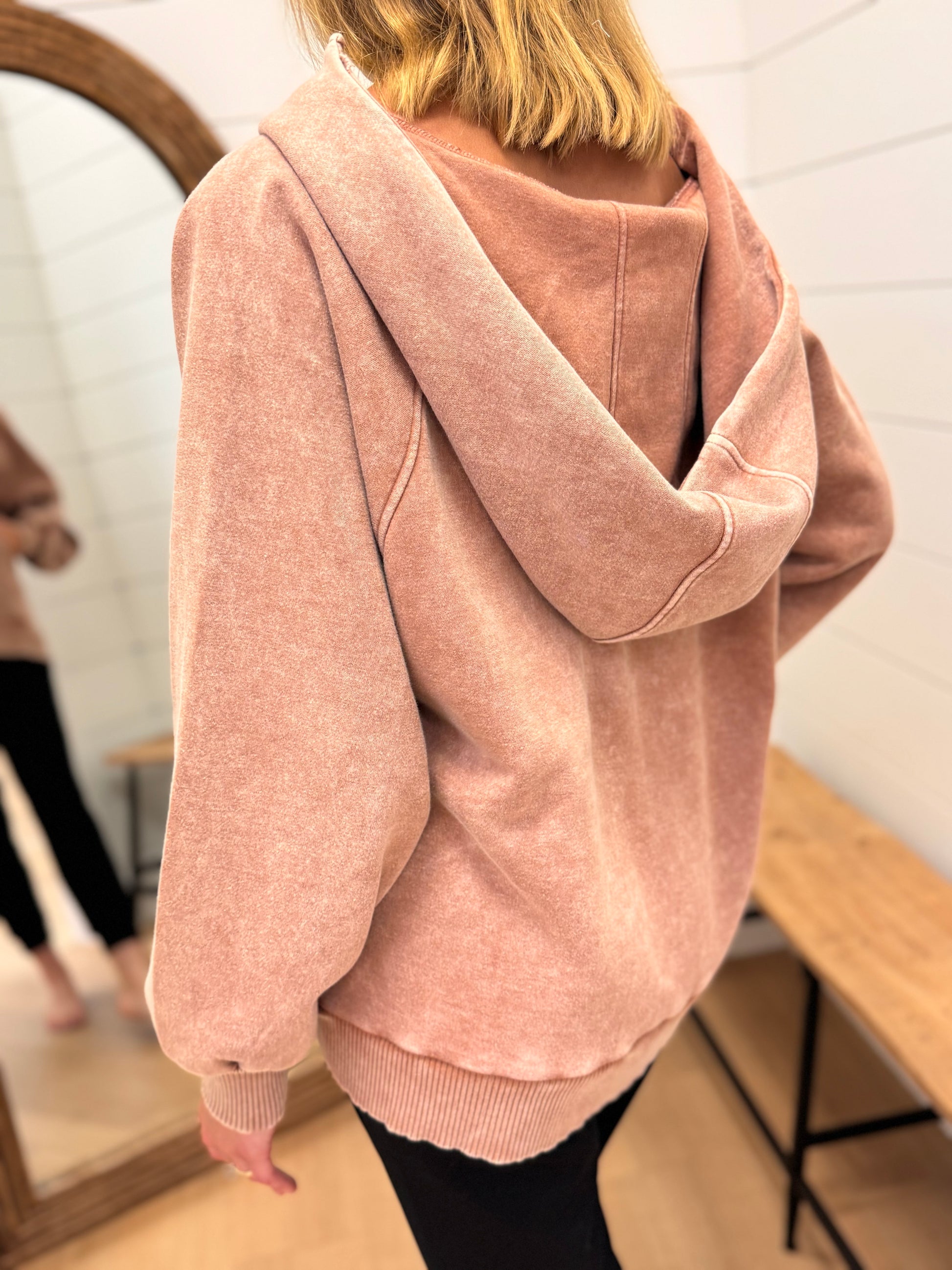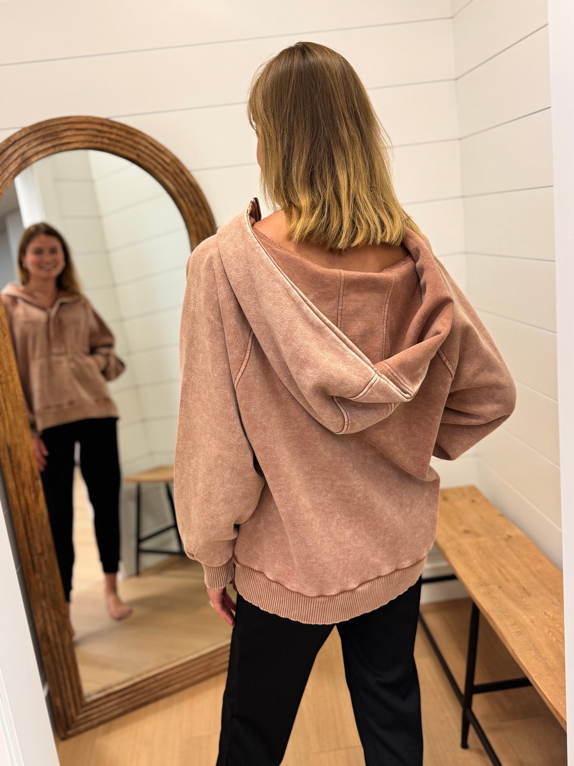 ACID WASH FLEECE OVERSIZED 1/4 ZIP KANGAROO POCKET HOODIE - 1/4 ZIP CLOSURE - KANGAROO POCKET