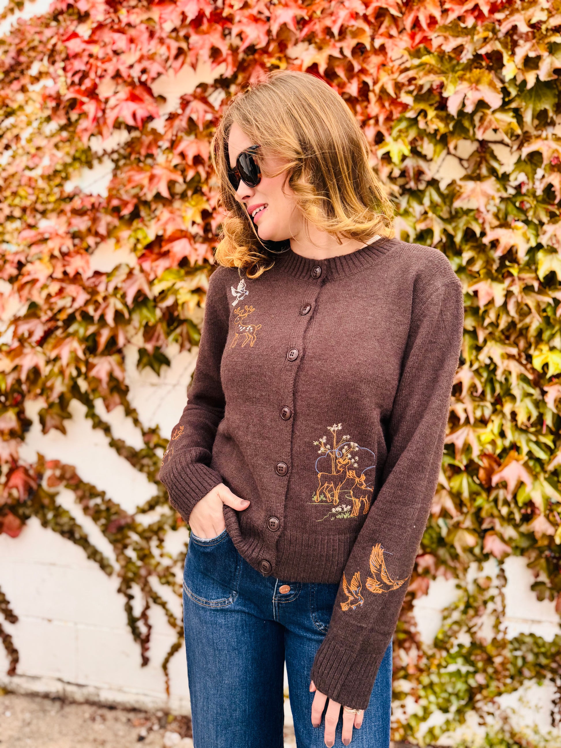 Animal Embroidery Detail Button Down Knit Cardigan