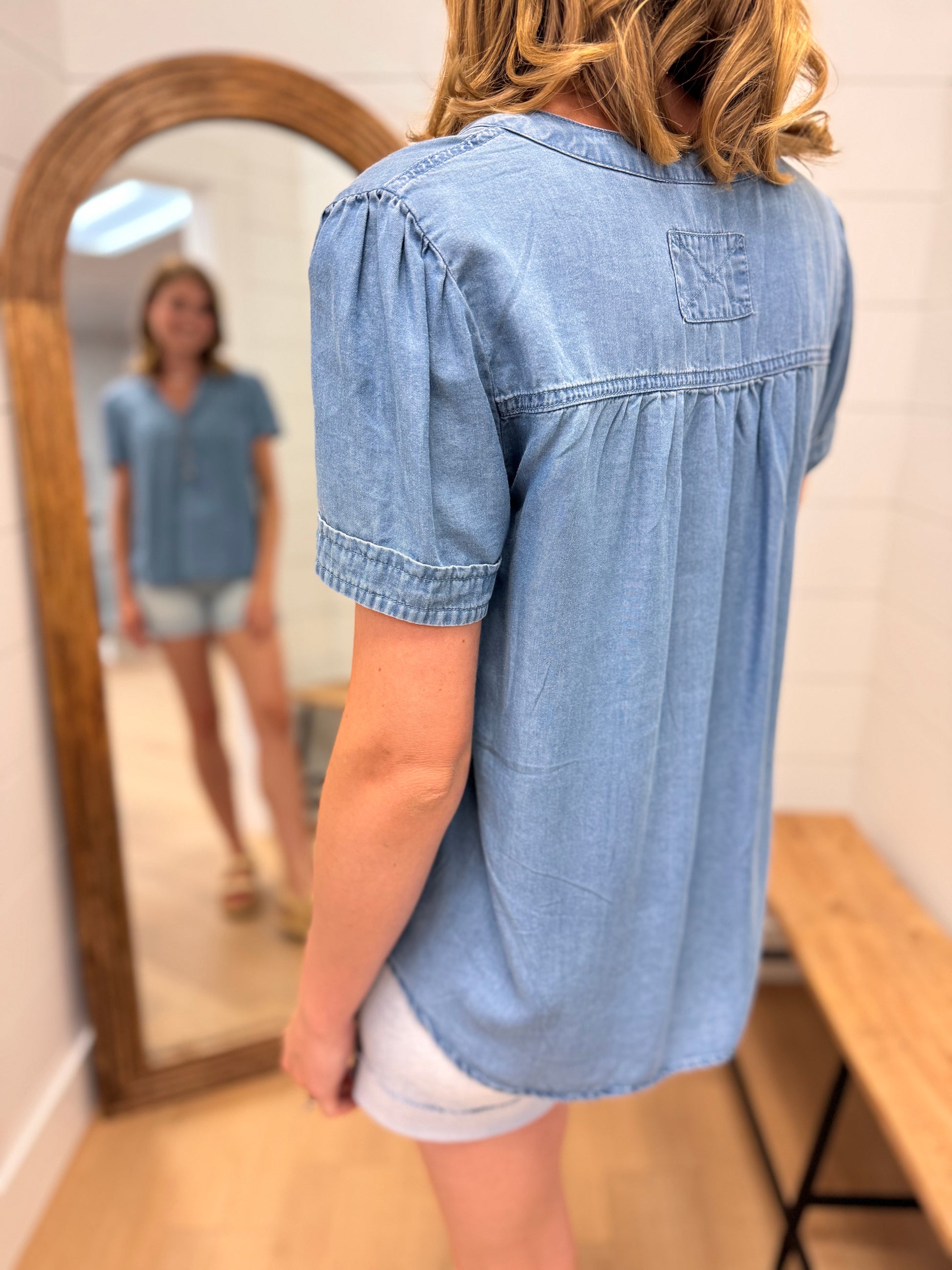 SPLIT NECKLINE SHORT SLEEVES YOKE DETAIL