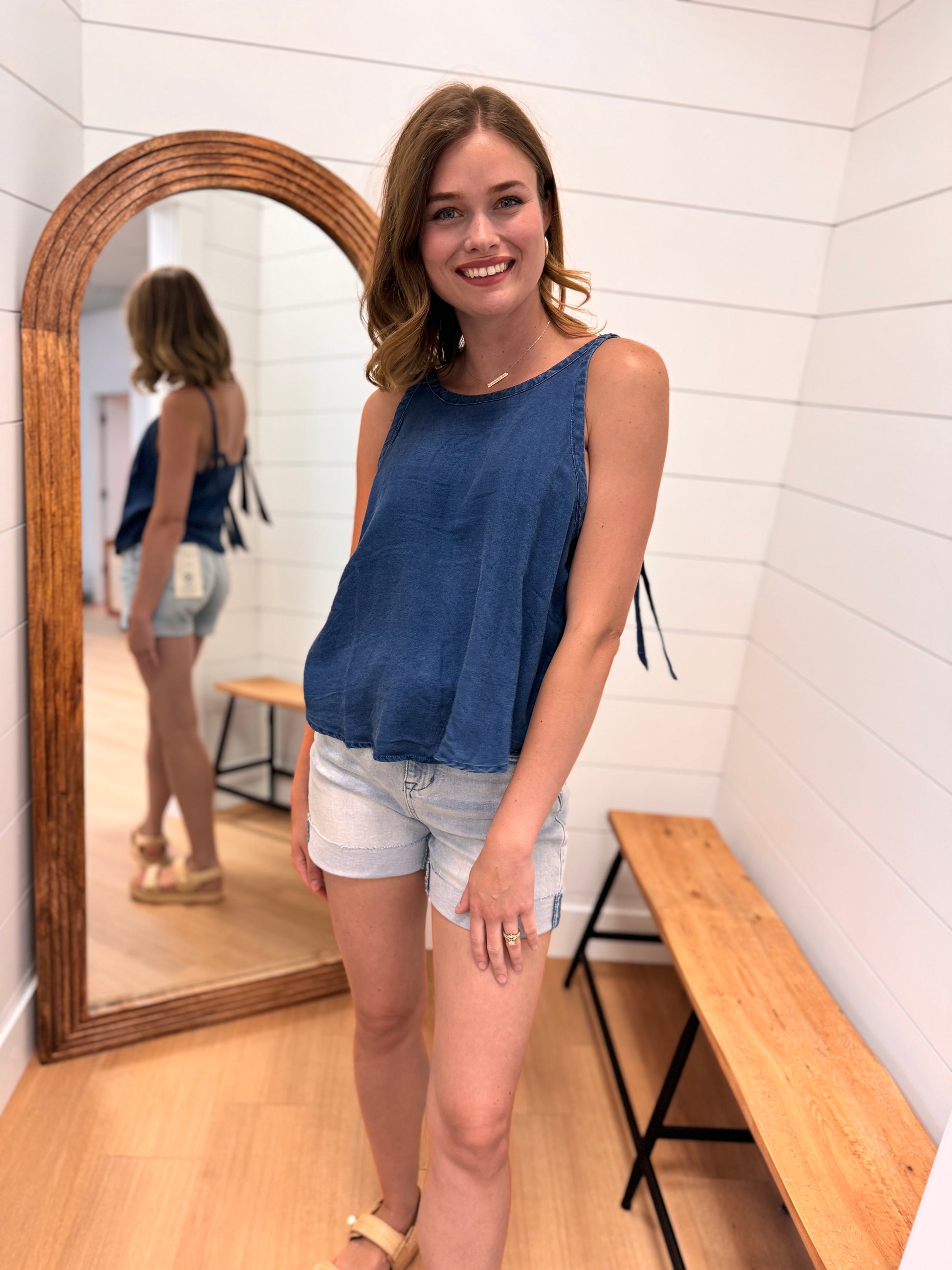 Chambray Tank Top with Tie Straps