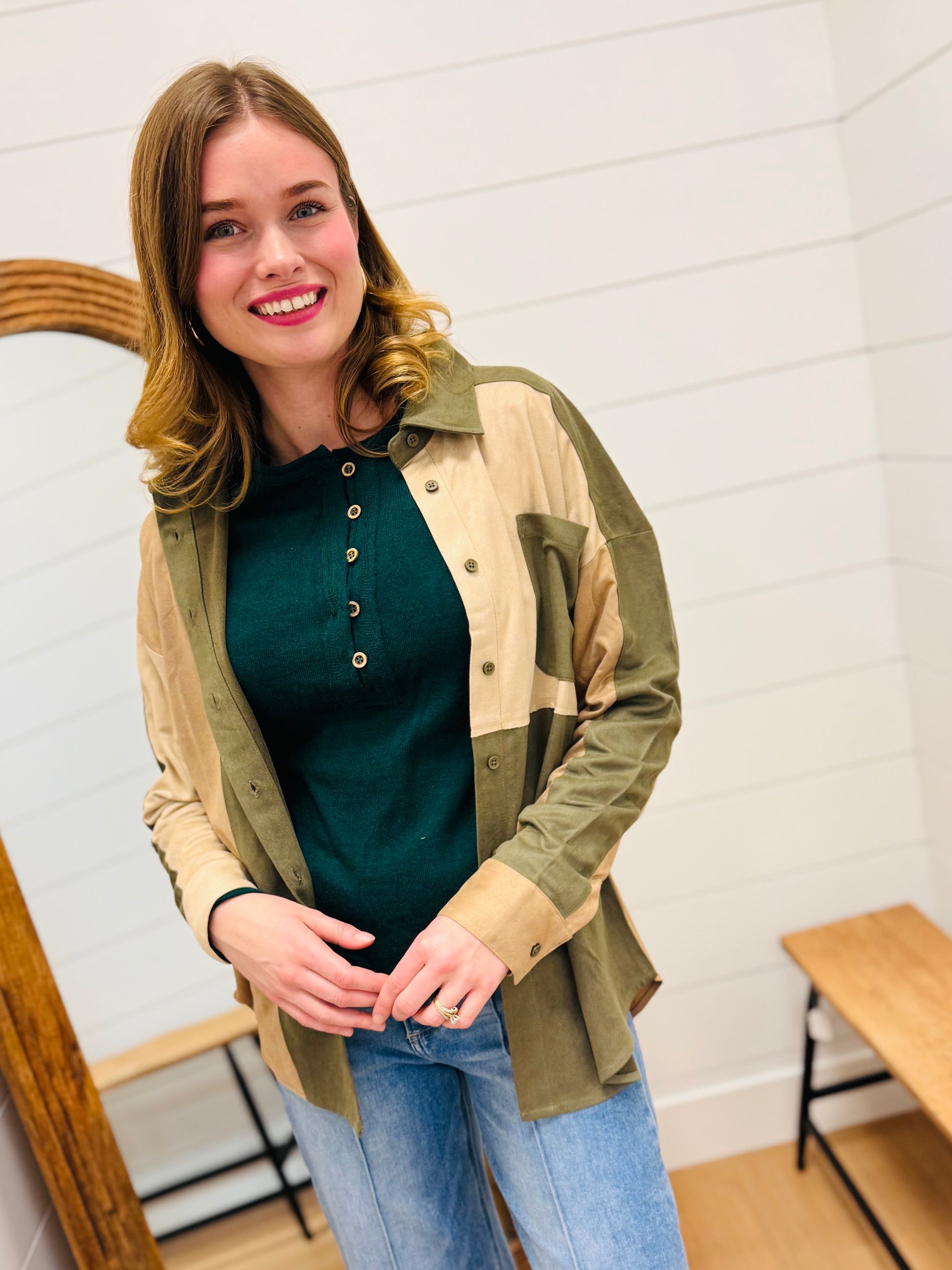 Color Block Suede Top
