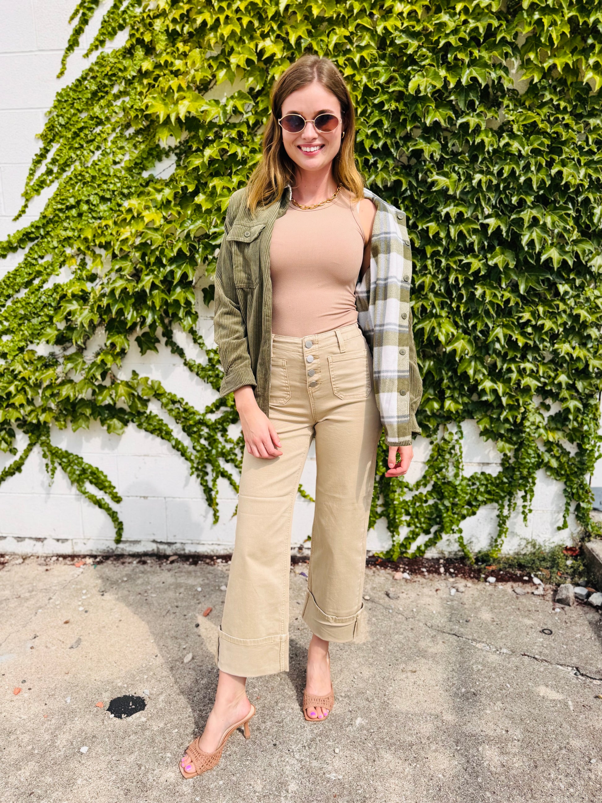 Corduroy Reversible Button Down Jacket - Olive