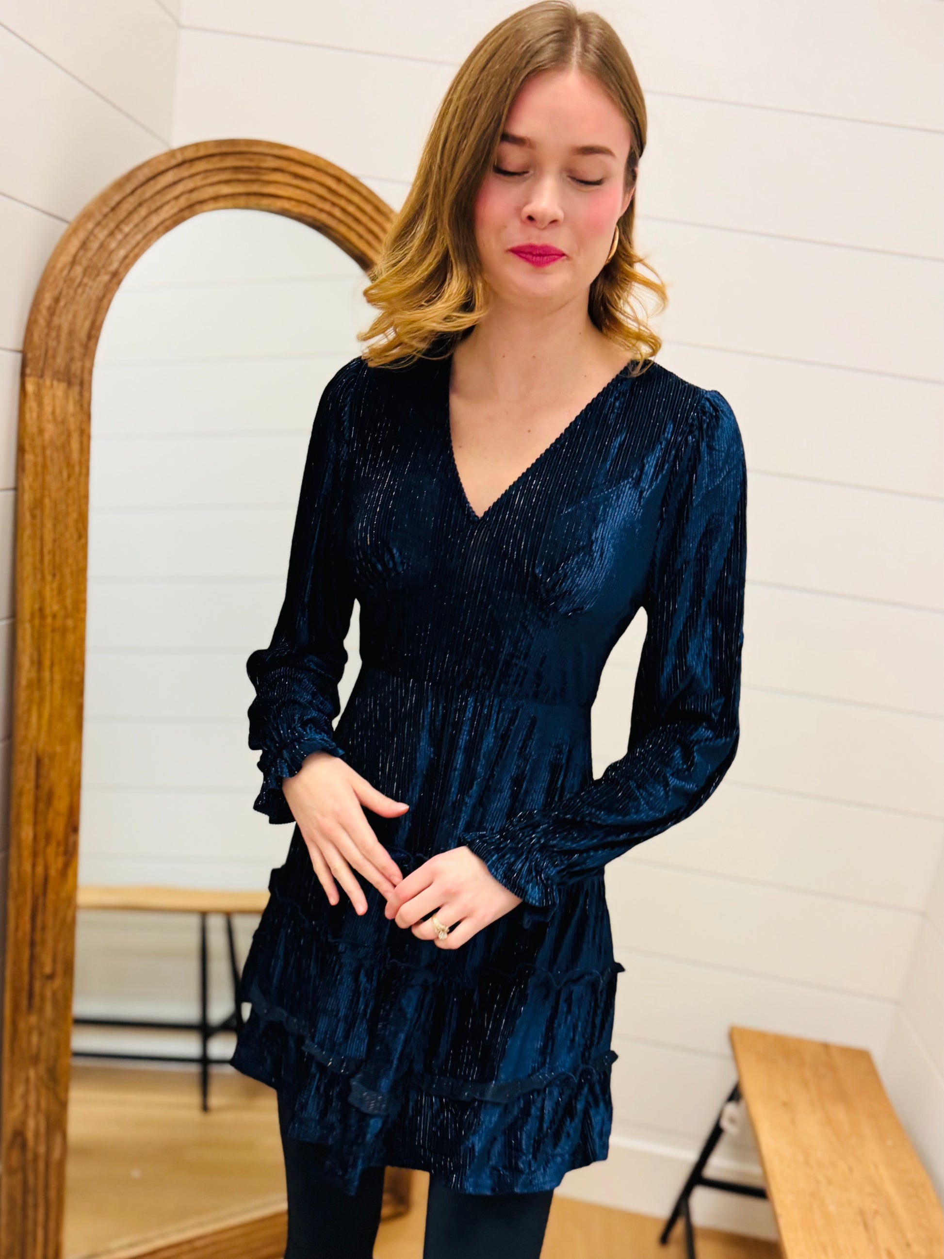 Deep V-neck Textured Velvet Dress