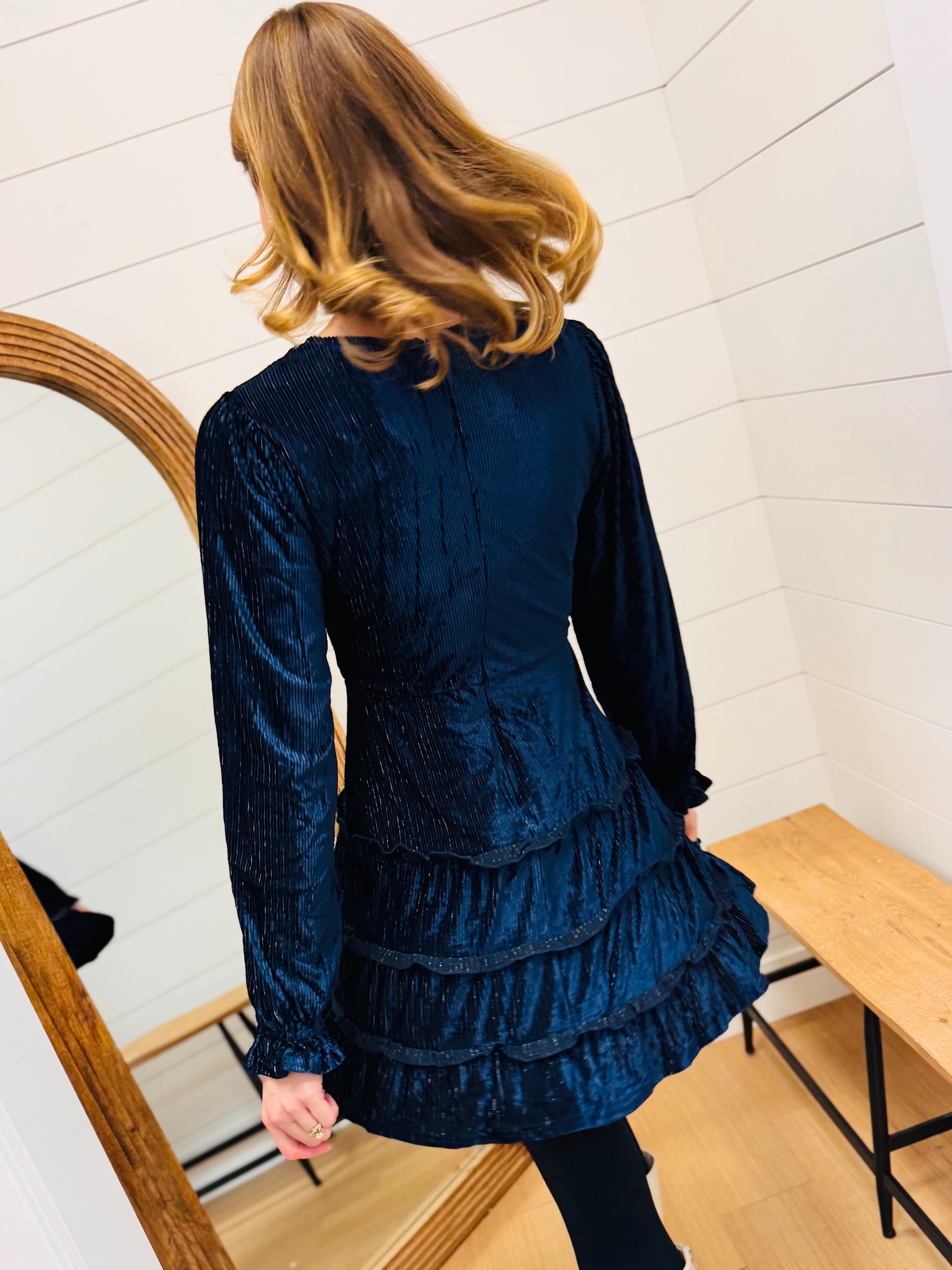 Long Sleeve Back Zipper Ruffled Tiered Layers
