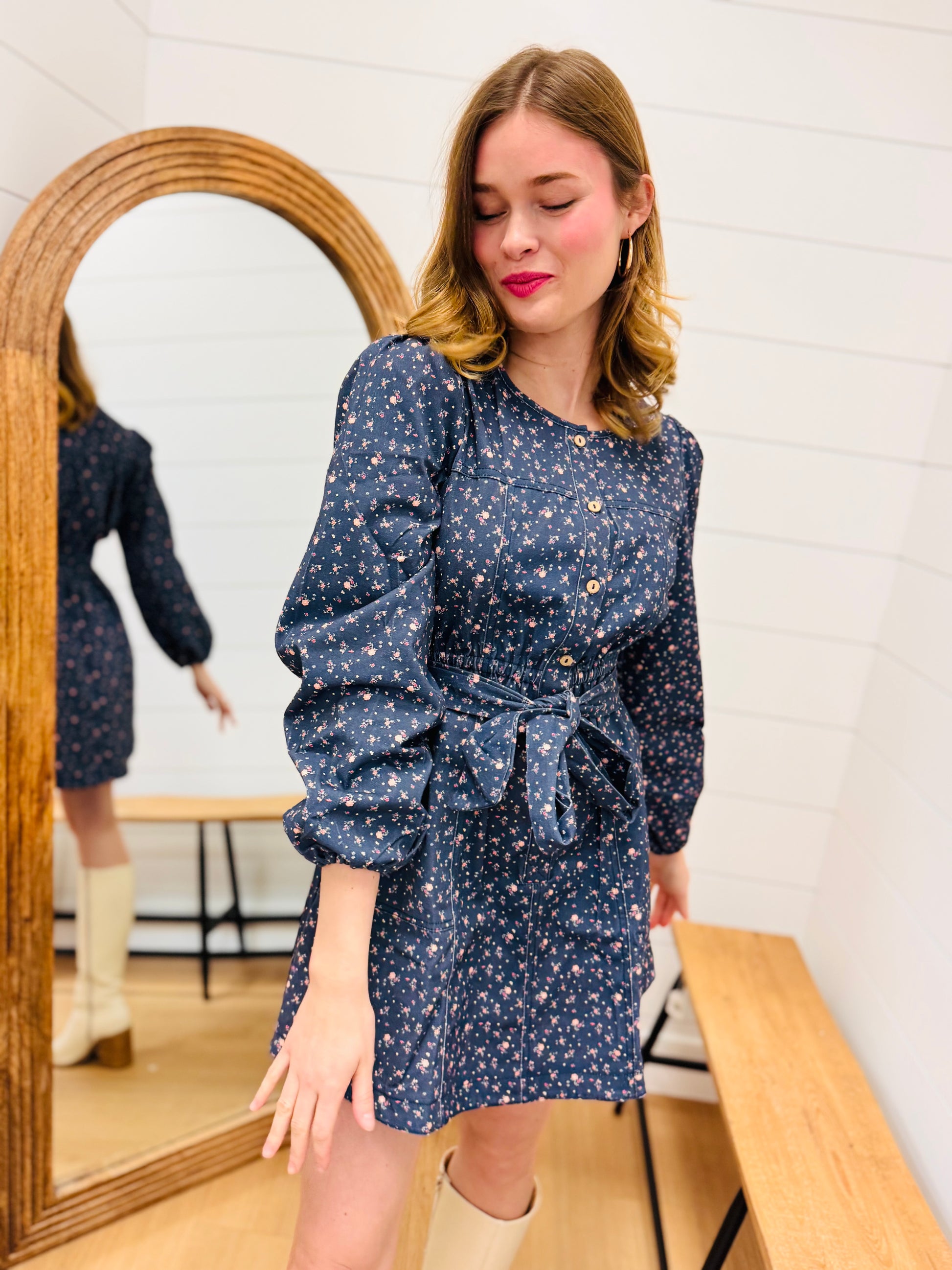 Floral Printed Button Down Mini Dress