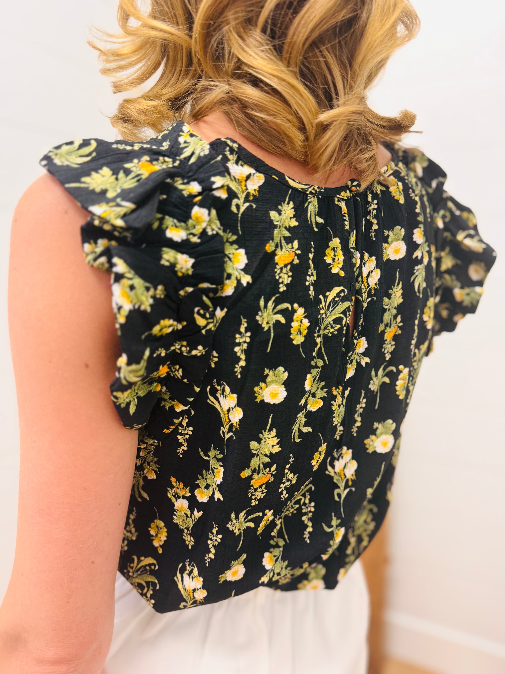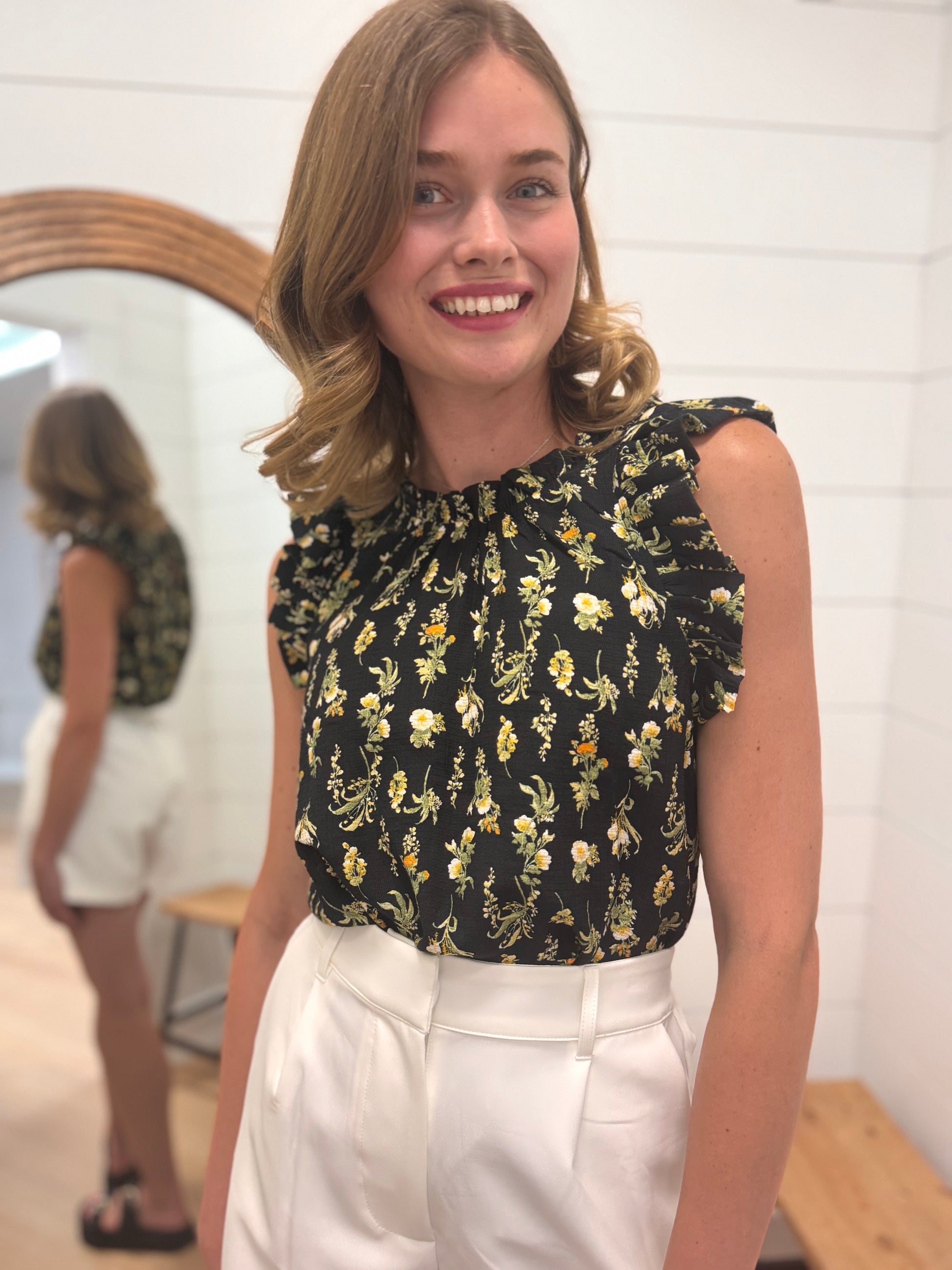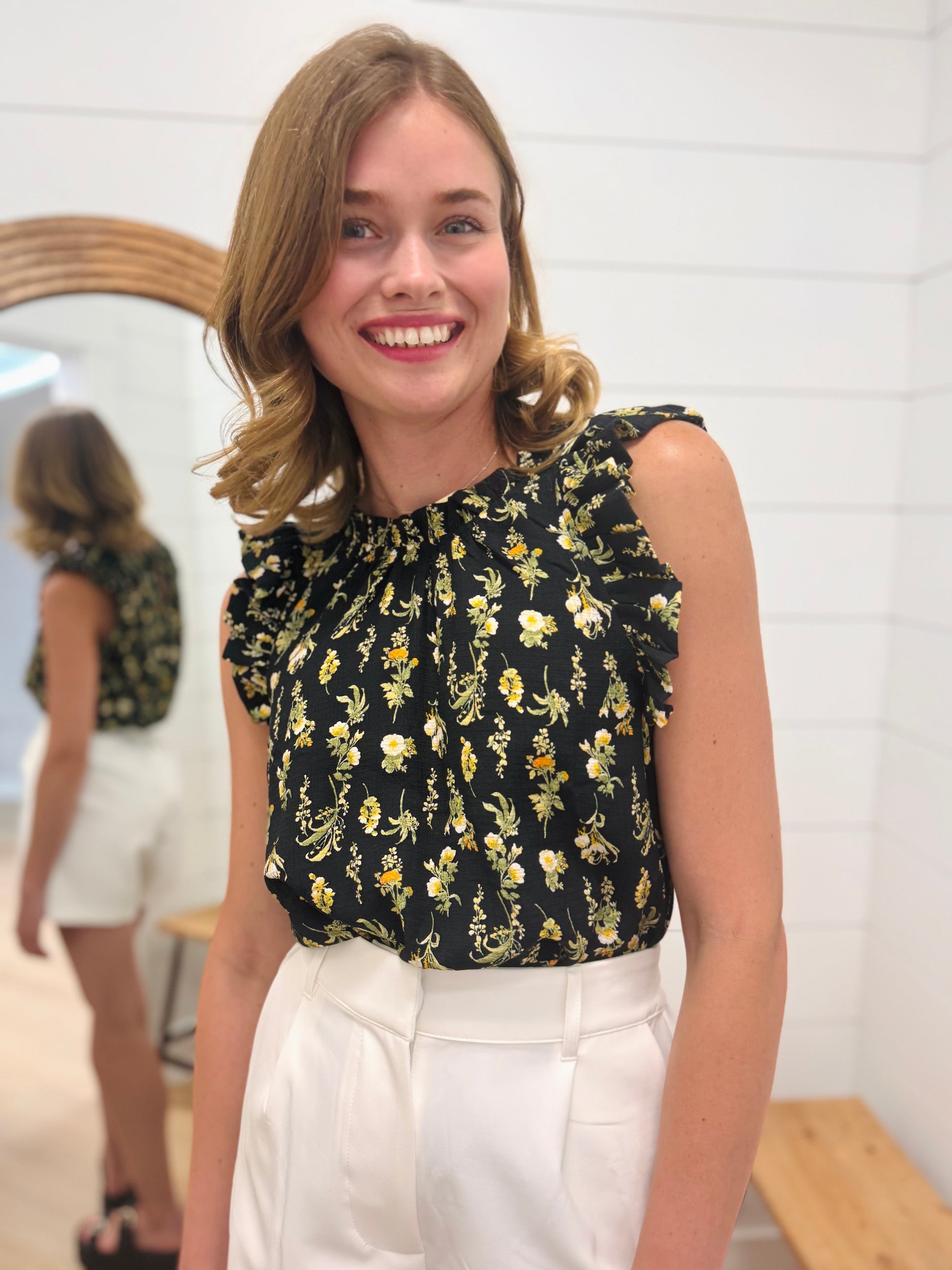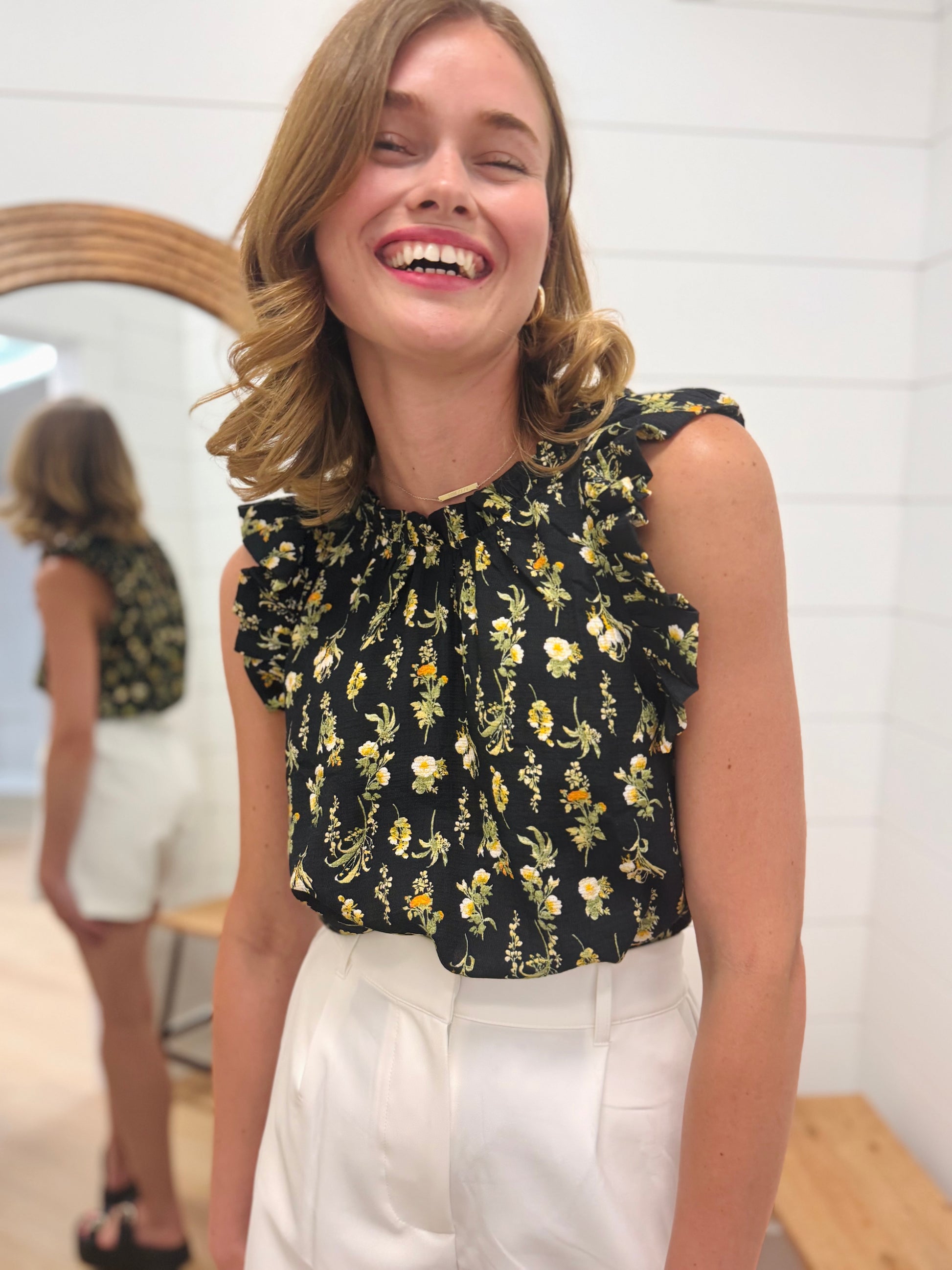 ROUND NECKLINE RUFFLE DETAIL BACK EYE CLOSURE
