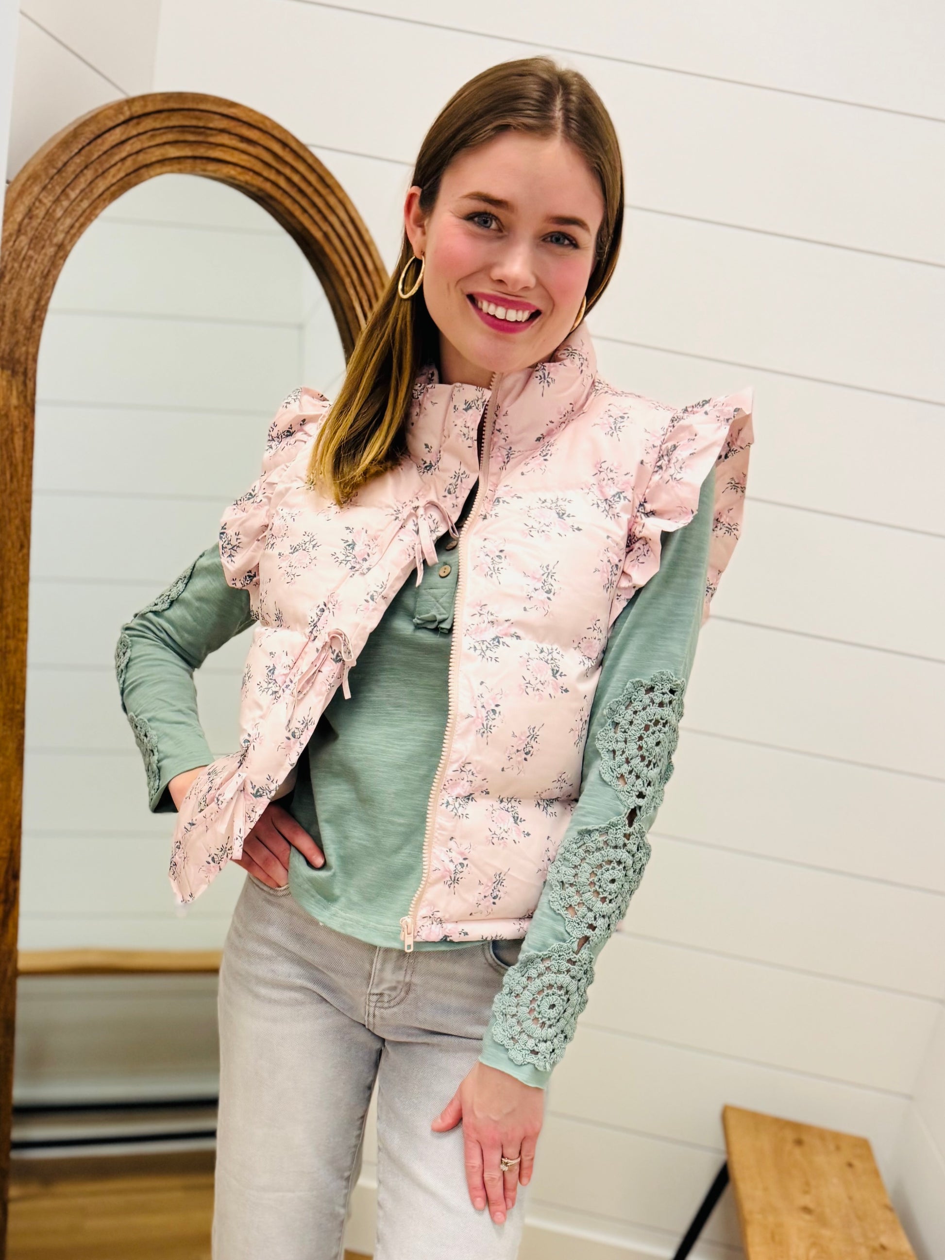 Front Bow Ruffle Sleeve Puffer Vest