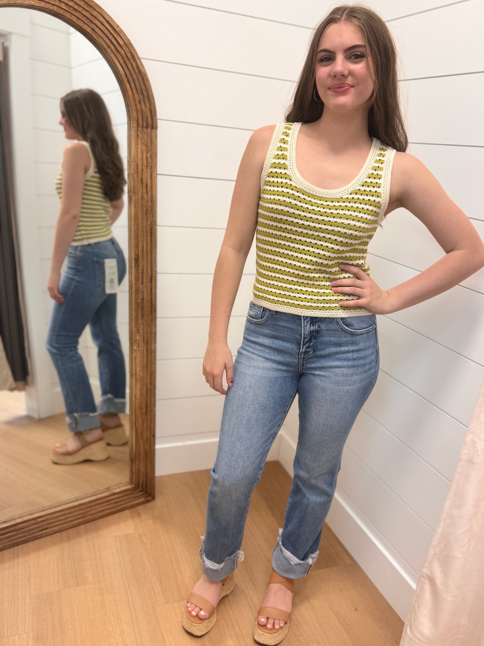 TUMMY CONTROL HIGH RISE CROP STRAIGHT CUFFED JEANS - Rise 10" | Inseam 27 1/2"(after cuff) 31"(before cuff) in size 3/26 - Model Info: Height 5'9"