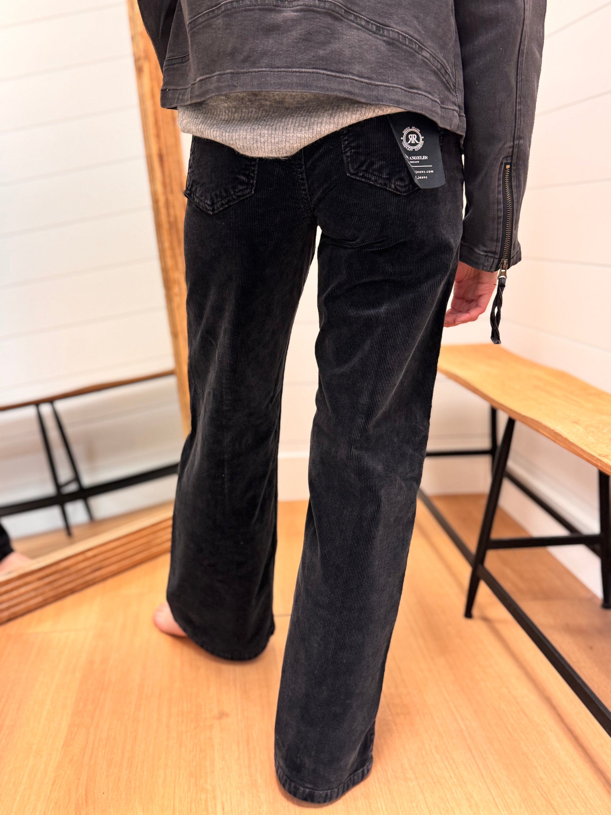 High Rise Wide Front Yoke Black Corduroy - Risen