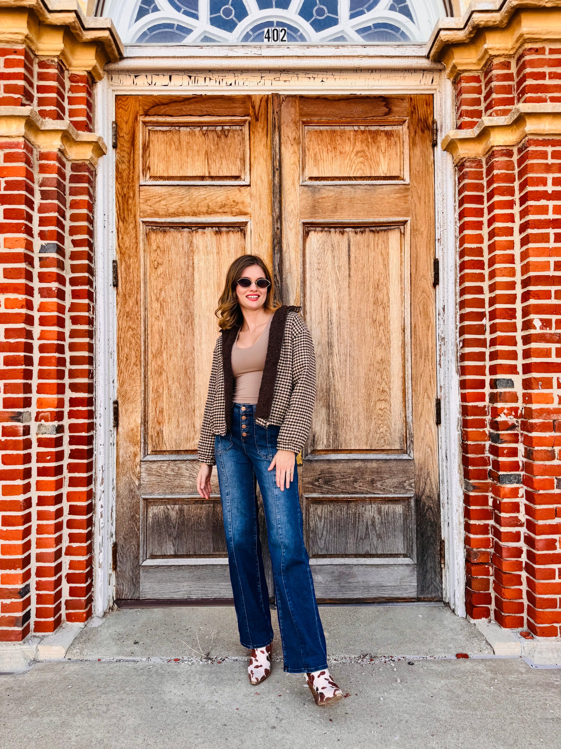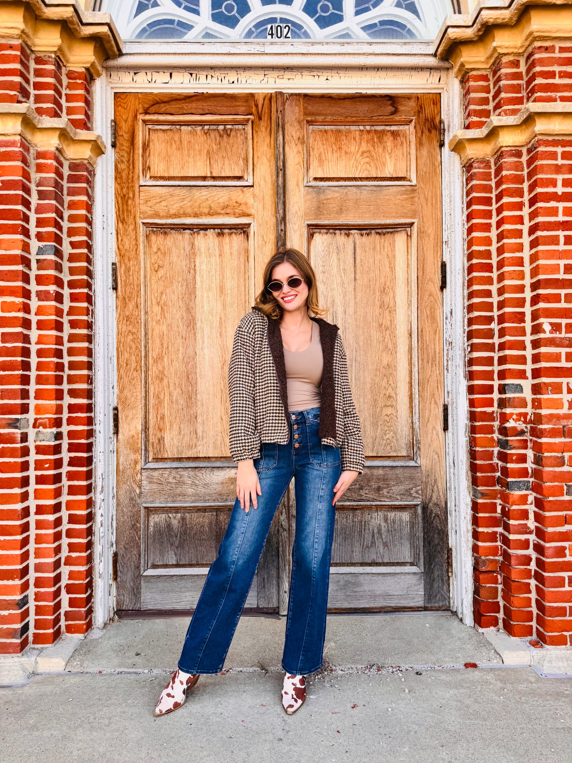 Houndstooth Sherpa Zip Up Jacket