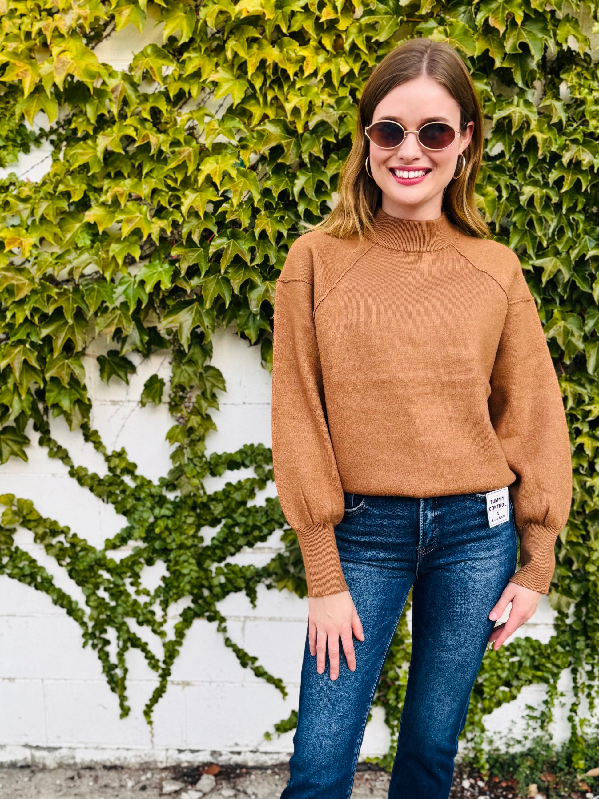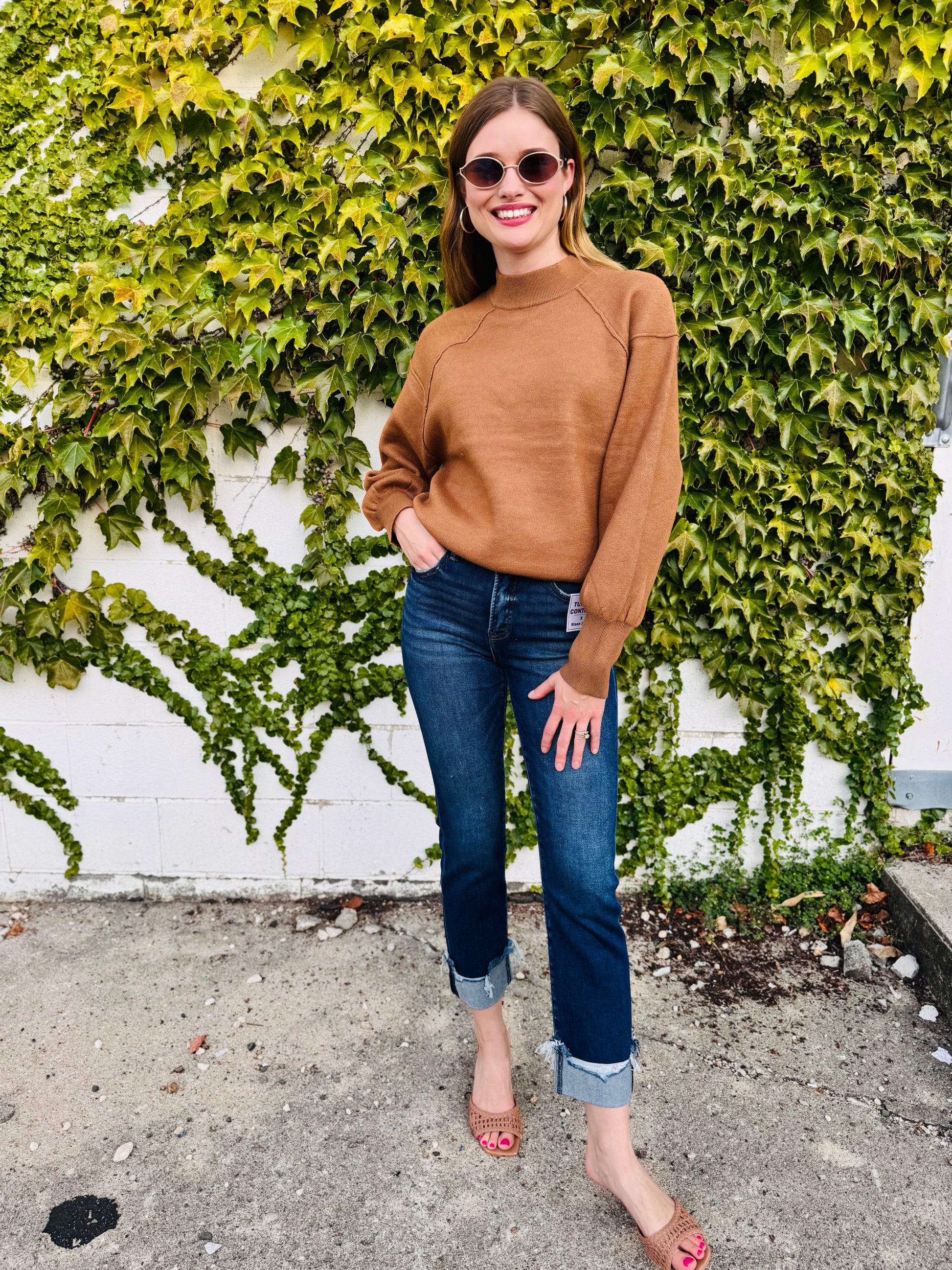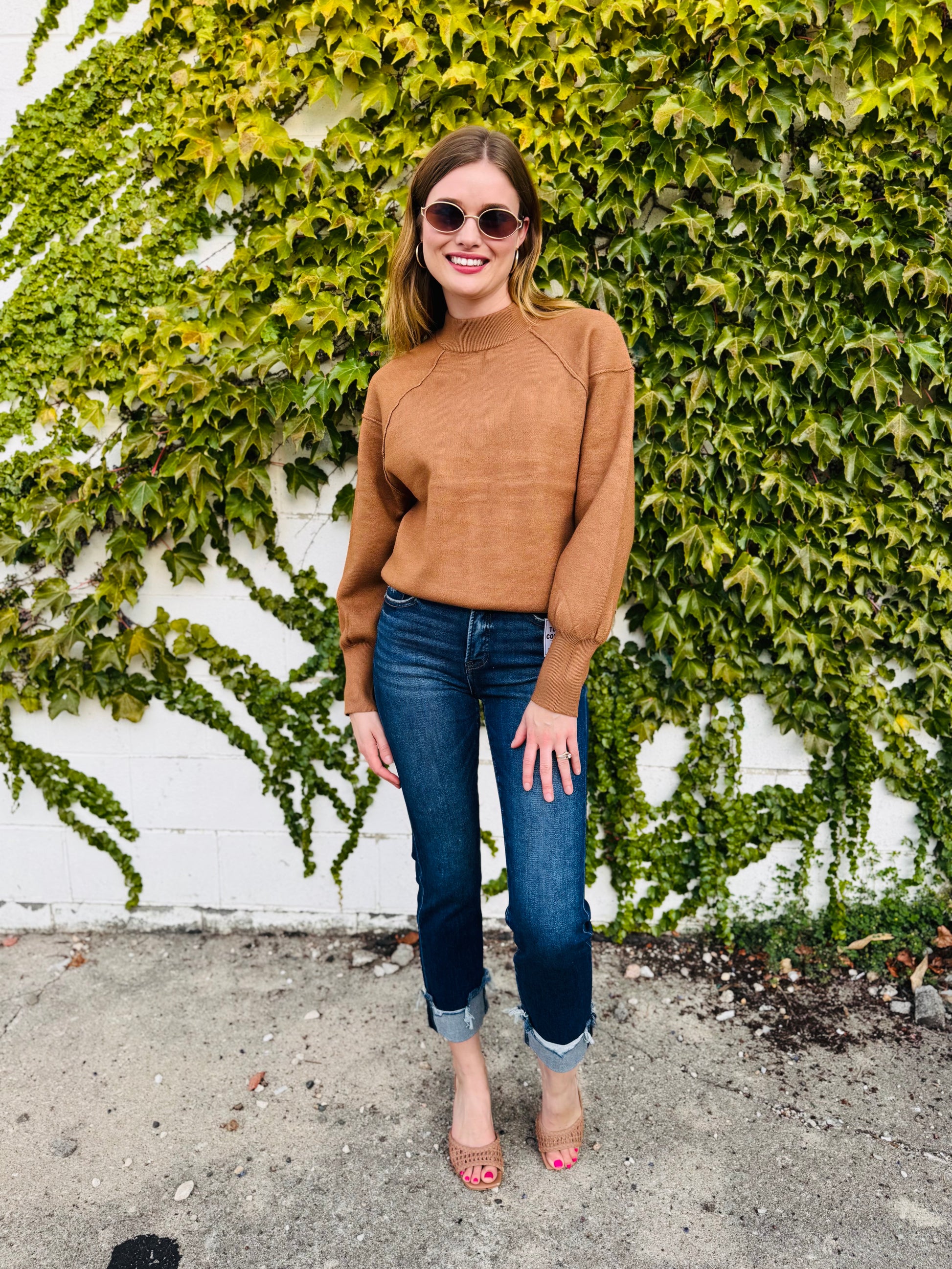 Mock Neck Exposed Seam Sweater