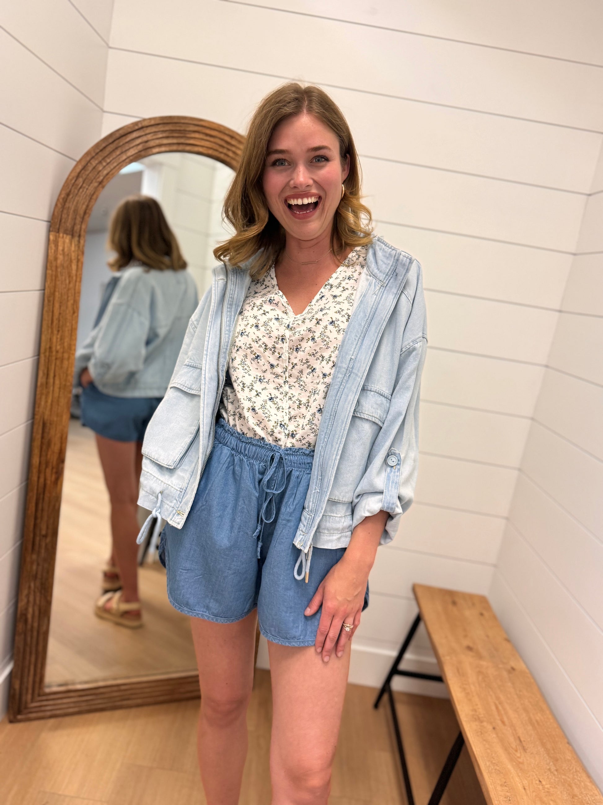 OVERSIZED LIGHTWEIGHT JACKET WITH CARGO POCKET & WAIST STRING Length 23 1/2"