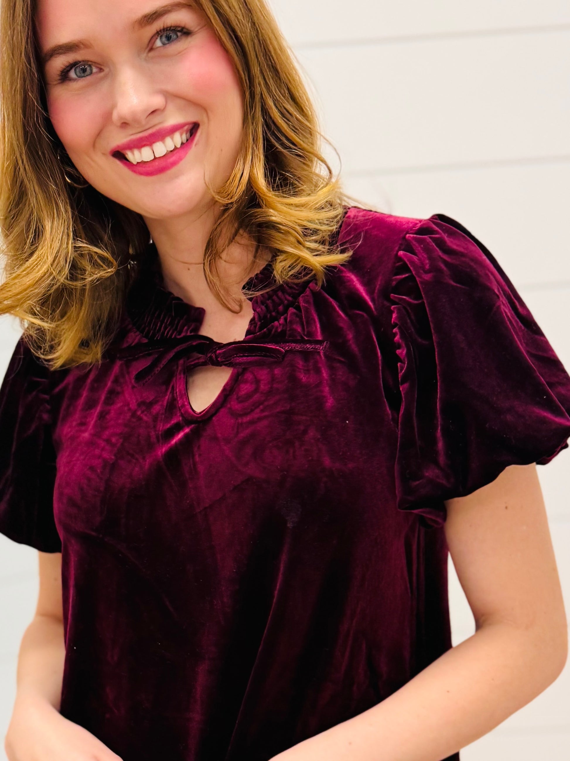Puff Sleeve Velvet Holiday Mini Dress