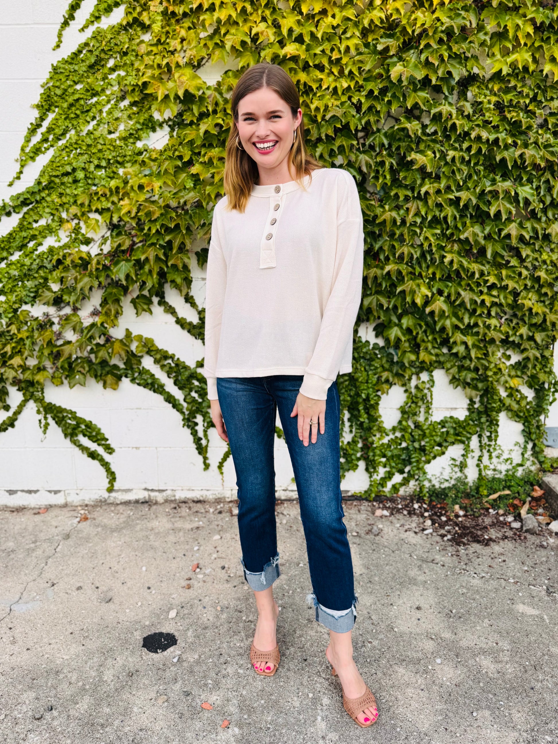 Ribbed Henley Long Sleeve Knit Top