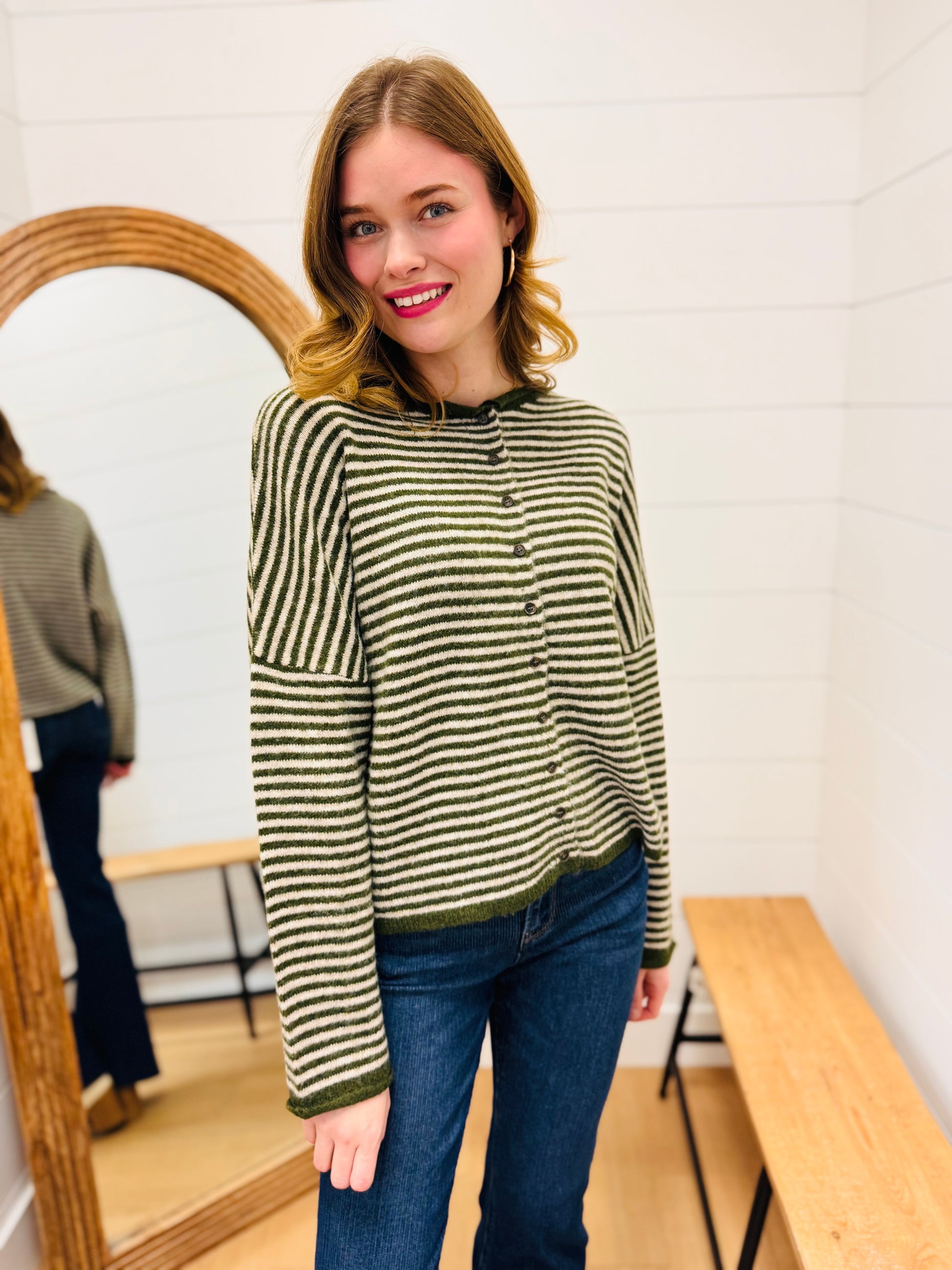 Stripe Raw Edge Drop Shoulder Knit Cardigan