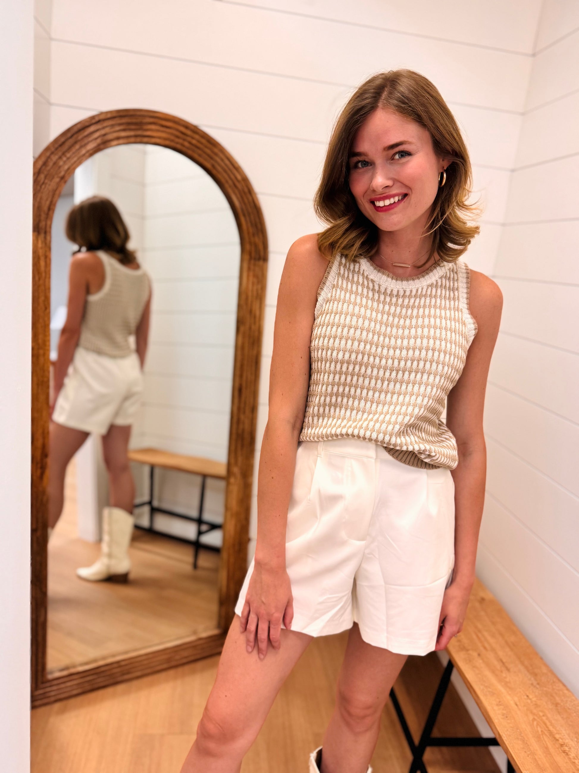 CREW NECK WITH STRIPE DETAIL SLEEVELESS CONTRAST KNIT PATTERN