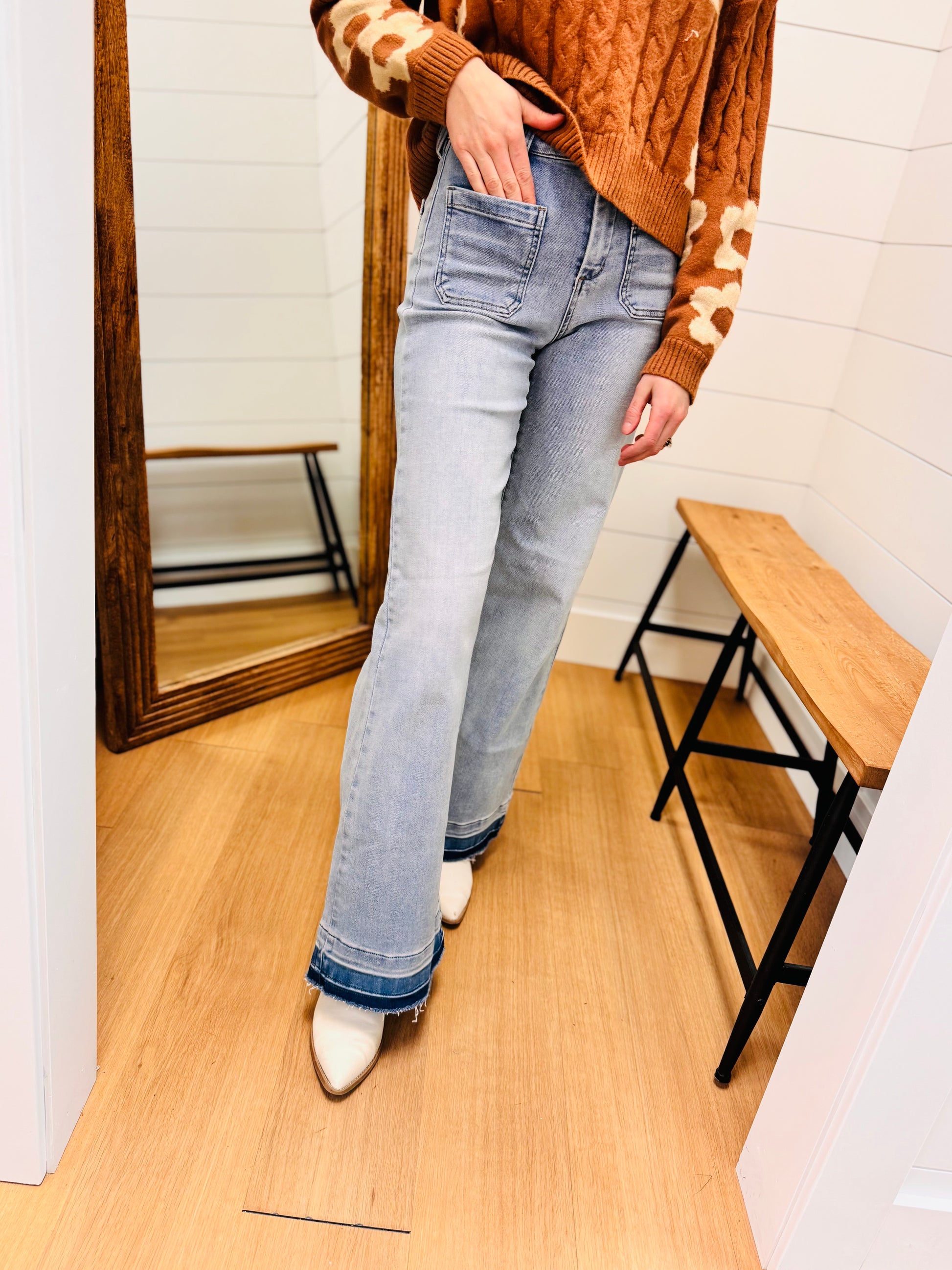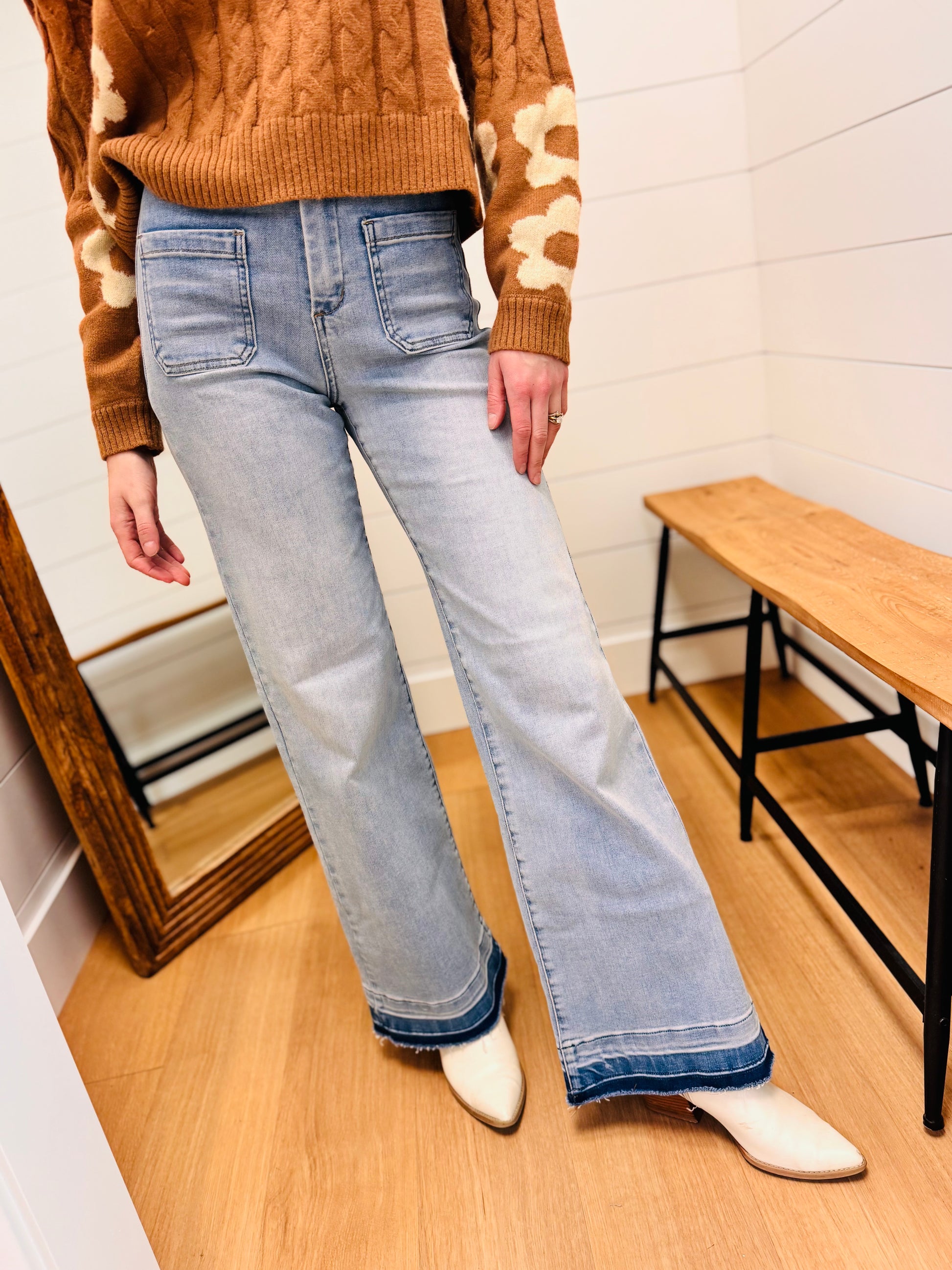 Undone Hem High Rise Wide Leg Jeans