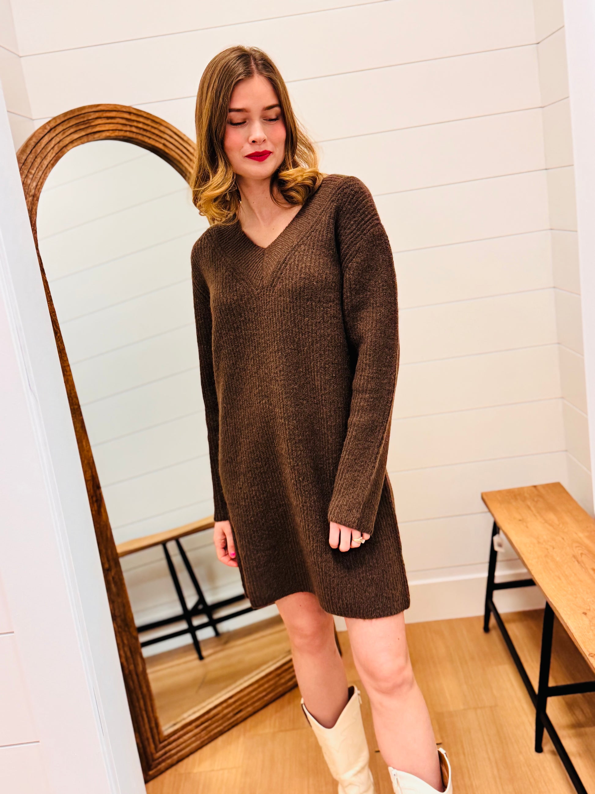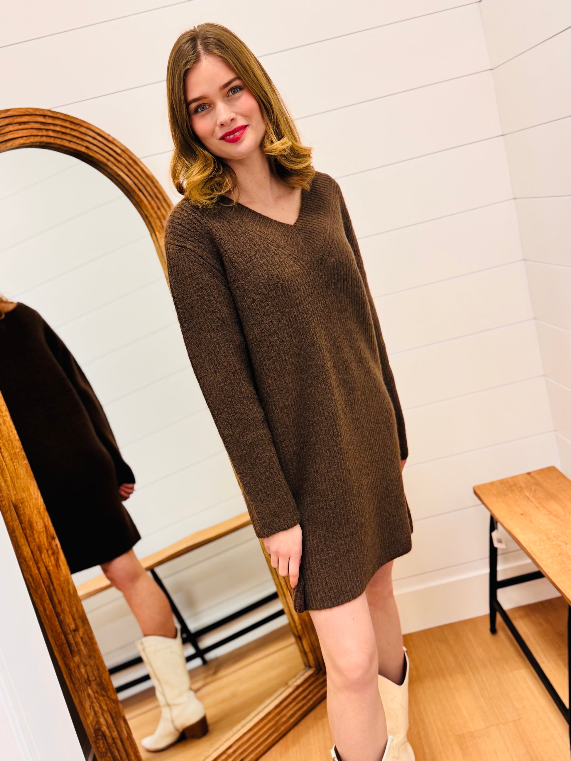 V Neck Sweater Dress
