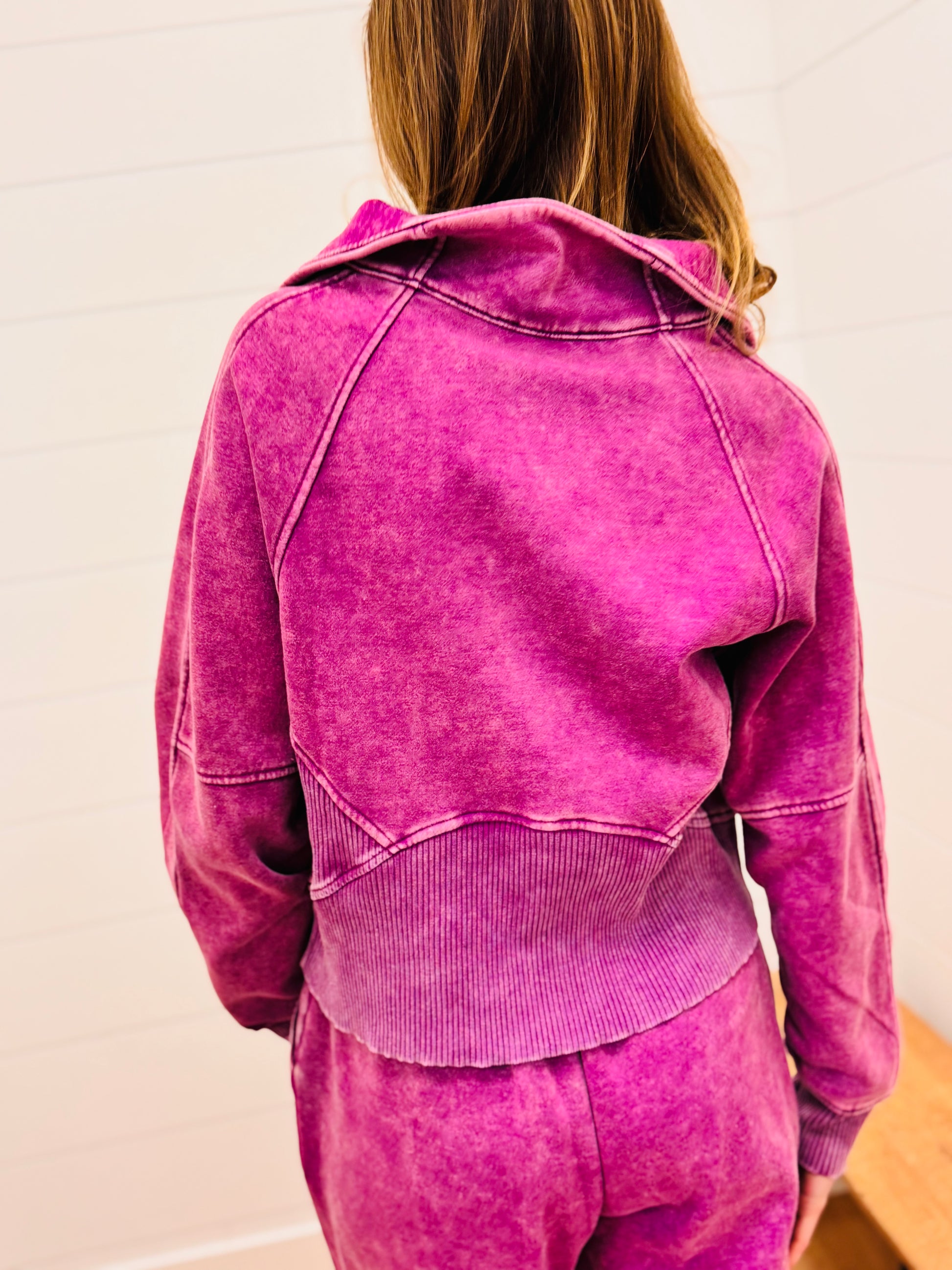 Vintage Wash Fleece Palazzo Sweatpants - Plum