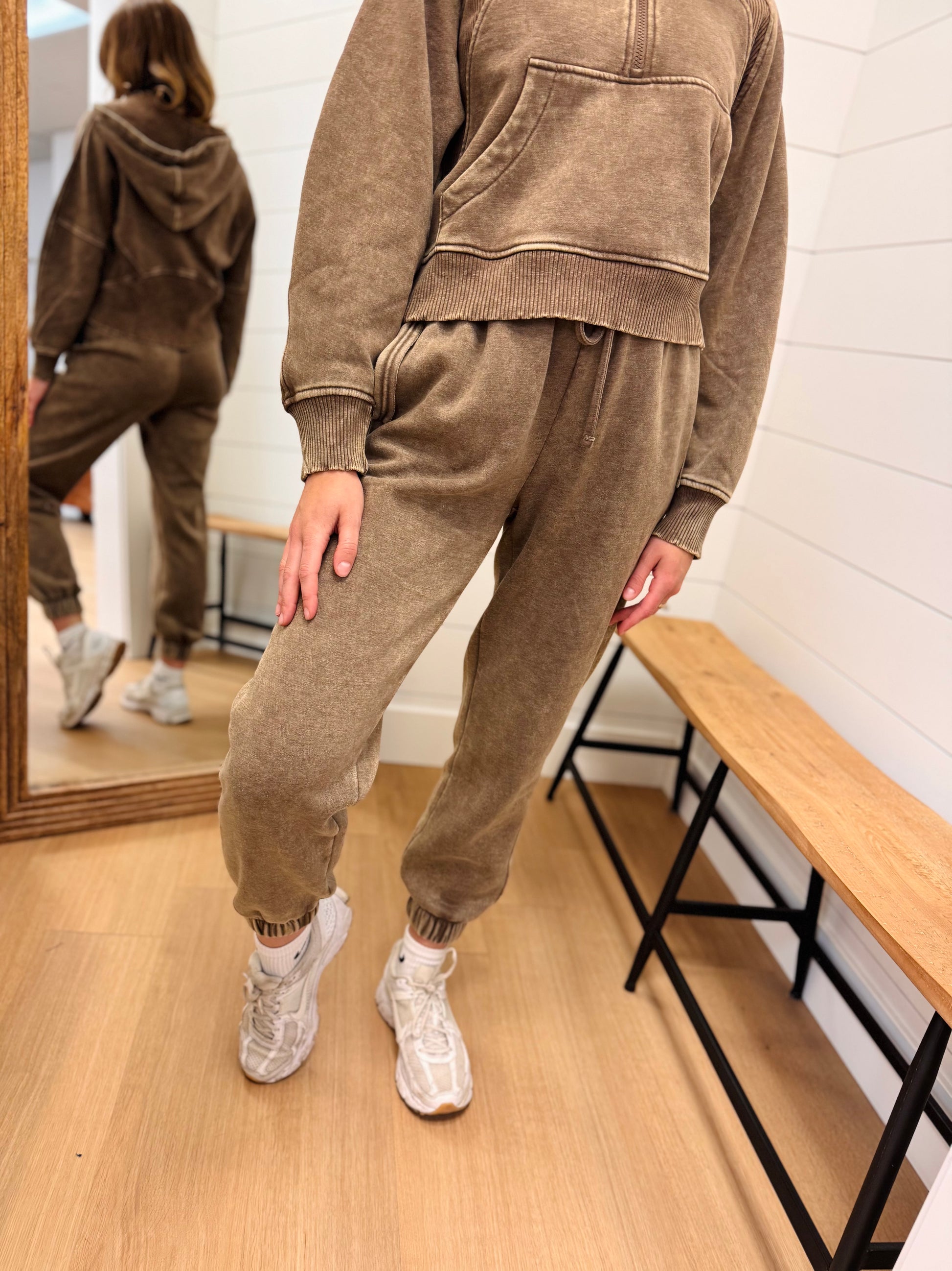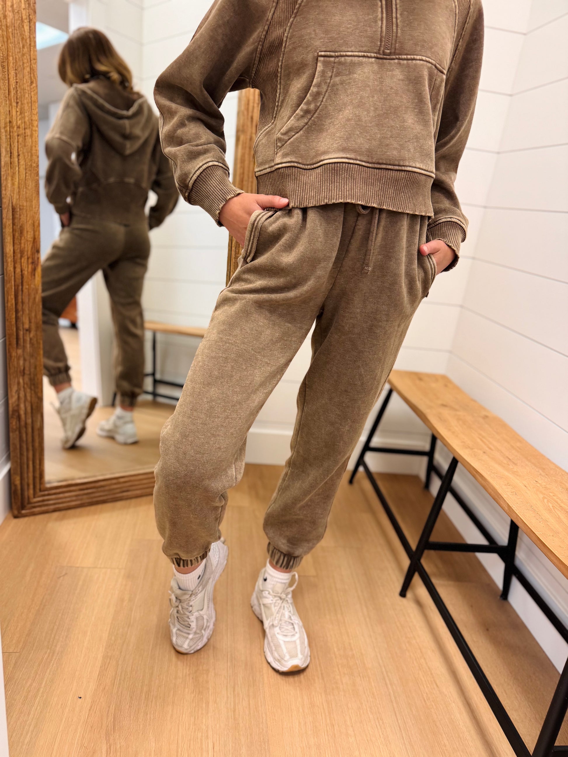 - ACID WASH FLEECE SWEATPANTS WITH POCKETS - DRAWSTRING ELASTIC WAIST