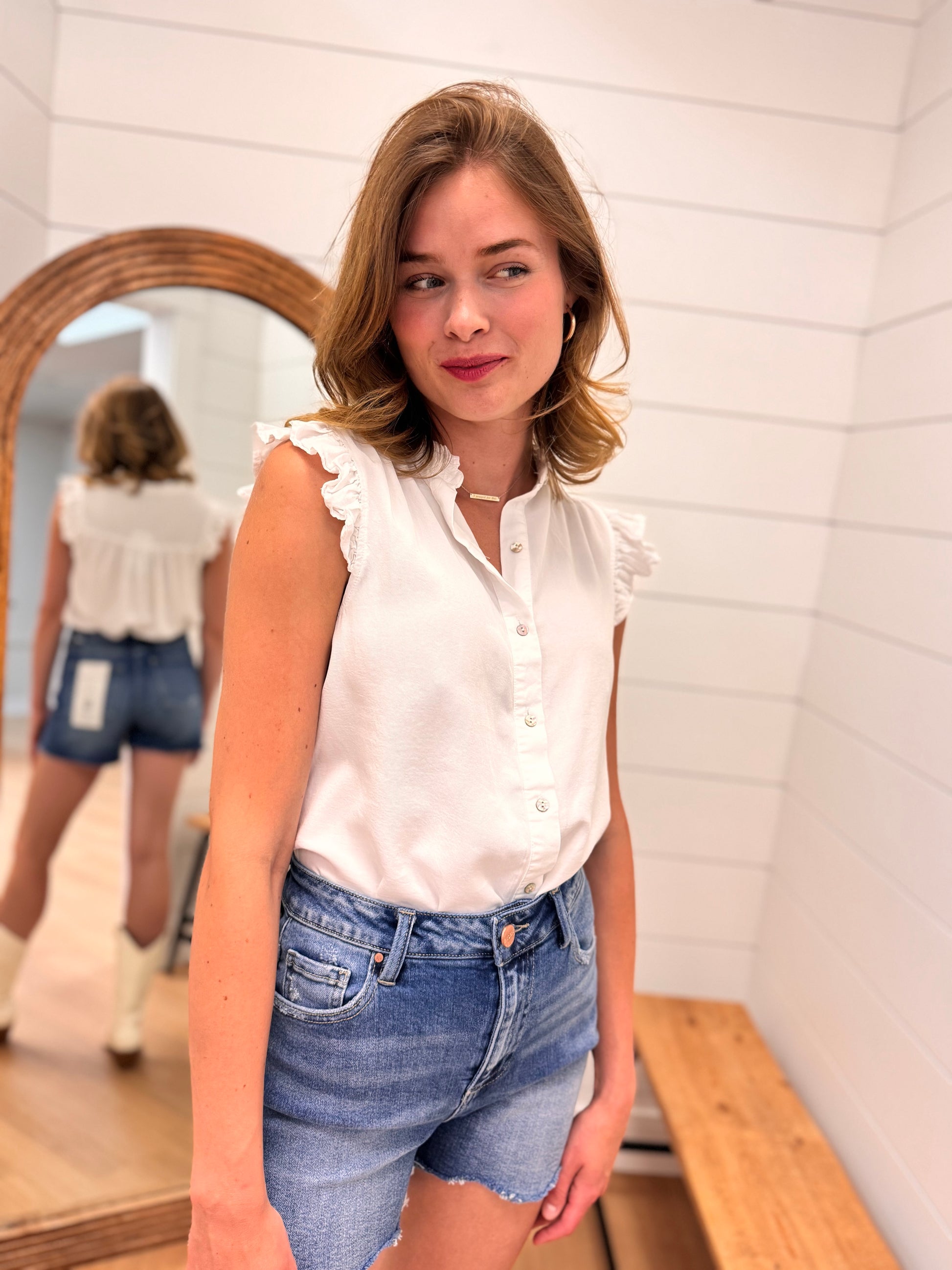Simple and comfortable look perfect for many occasions DETAILS: - Ruffle Cap Sleeves - Ruffle Jewel Neck